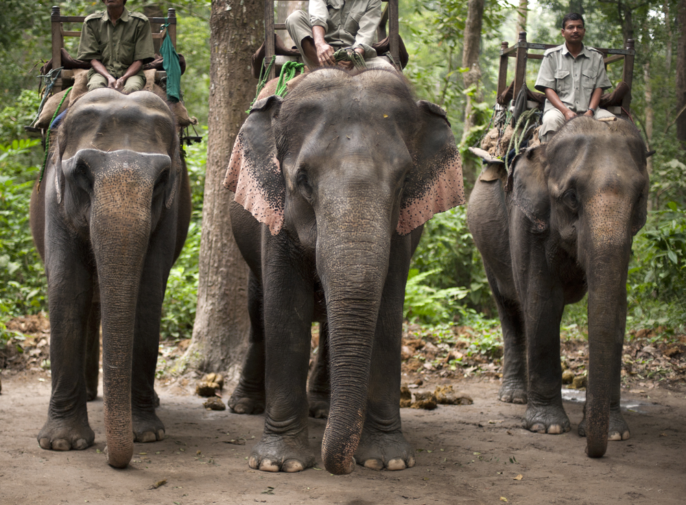 | On Safari to spot a Vulnerable Indian Rhino, while riding an Endangered Asian Elephant. |