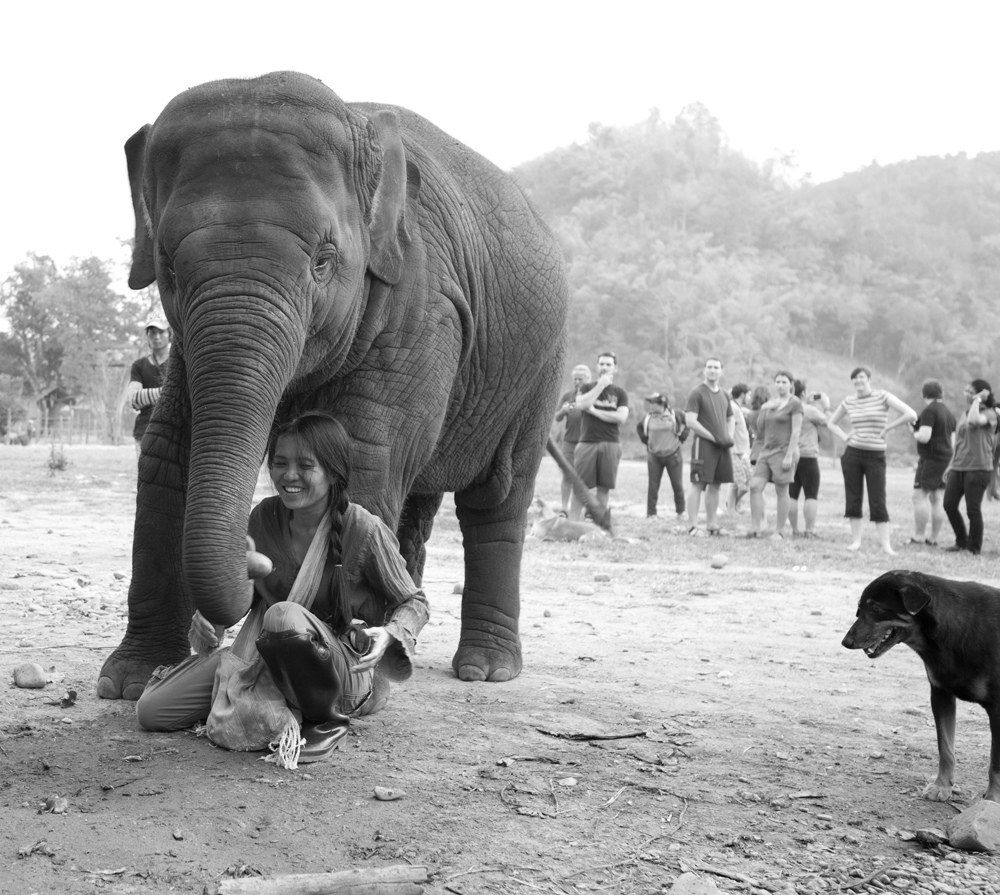 One afternoon while sitting in one of our favourite restaurants, Chantelle was reading a brochure on The Elephant Nature Park (ENP), she suggested that we go there and see how elephants really live when they don’t have to work, to try and understand more about our elephant ride in Nepal. So we booked a day tour, what I remember from that day was many happy elephants, an amazing lunch and listening to Sangduen ‘Lek’ Chailert speak to us about the Asian elephant. What really impacted me the most was the stories of all the elephants at ENP, stories of loss, pain and suffering. Stories of hope, friendship, forgiveness and inspiration. You can read about all the elephants and their pasts here: