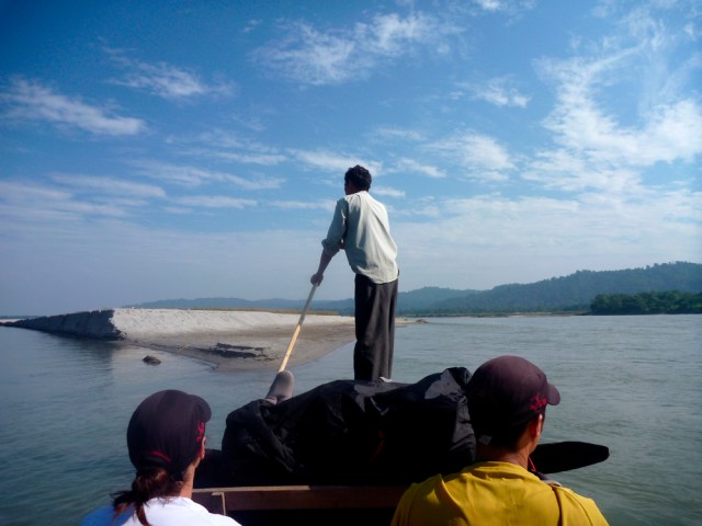 | The boatman ferries us into Chitwan National Park. |