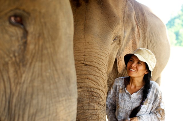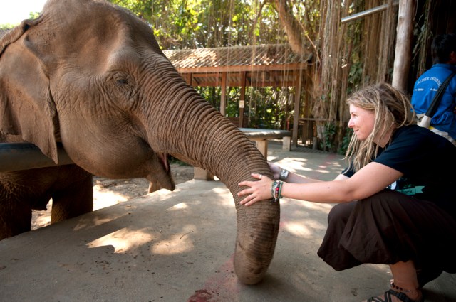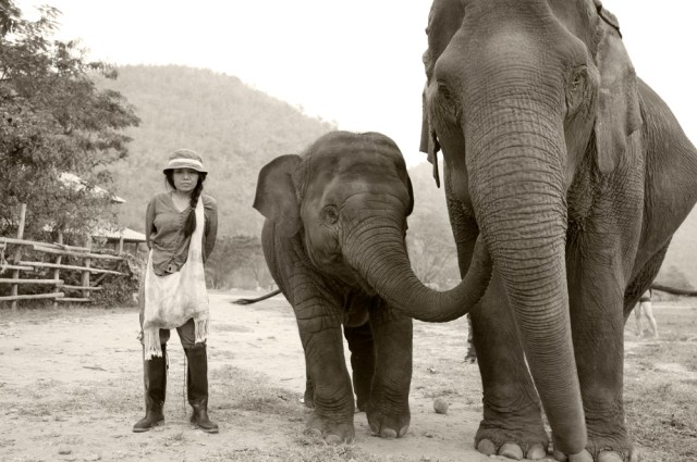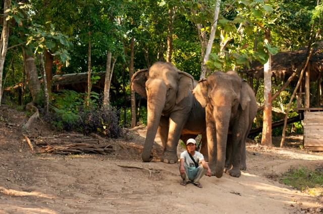 | Lek with two of her elephants. You can tell just how much she loves spending time with her elephants at ENP. |