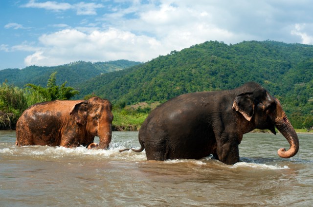 | Mae Boon Ma & Mae Bua Loi taking a dip in the river at ENP. |
