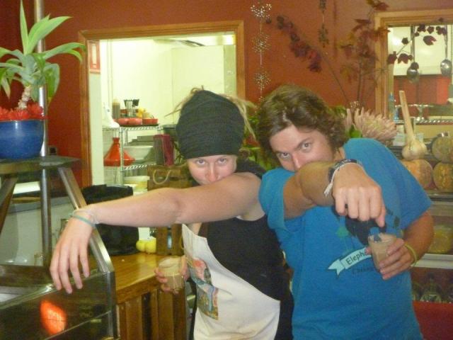 | Chantelle and I doing the Chang dance after 13 hours of prep, and service. We needed coffee if you didn’t notice. Unfortunately we actually didn’t take a single photograph all night, which is a shame as it was a highlight of our fundraising together. |