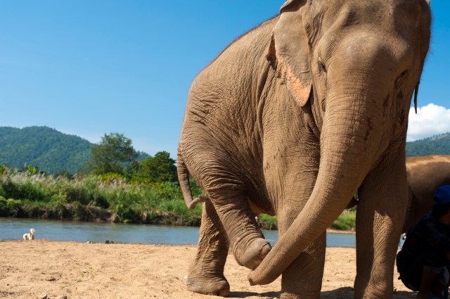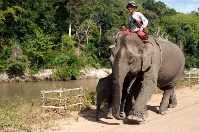 | Jokia and Mae Perm waiting patiently to cross the river on the way up to Elephant Heaven. |