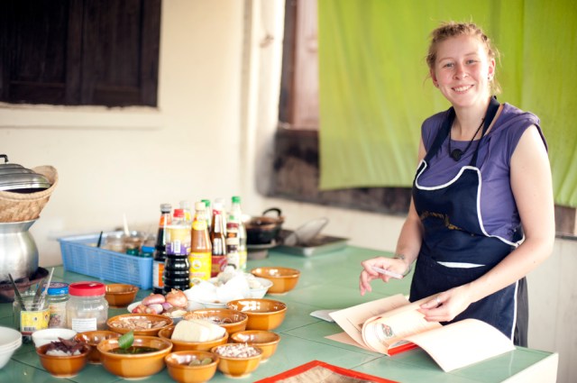 | Chantelle at our vegetarian cooking school lesson at Taste From Heaven restaurant. |