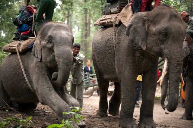 It was here that our involvement with elephants began. On our first night we had a briefing about the wild animals that live in Chitwan National Park and what to do if we encountered a Royal Bengal Tiger or an Indian Rhino. We were then told that the first day of our safari type experience involved an elephant ride through the grasslands to try and locate the Rhinoceros for photographic opportunities. This didn’t sit well at all with Chantelle, I kept trying to tell her that ‘they wouldn’t treat the elephants bad’ and that ‘everyone rides elephants, surely it’s not hard on them’. If only we knew…