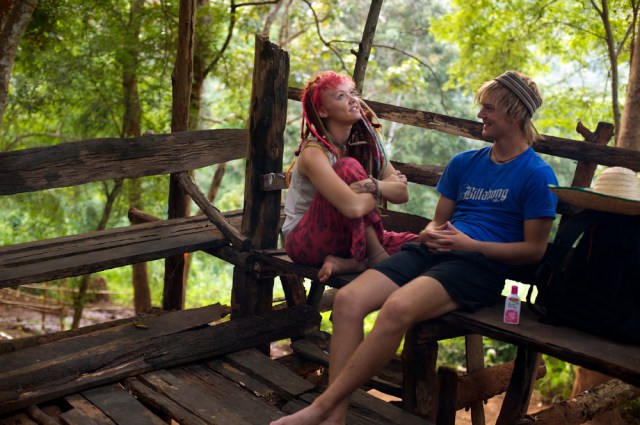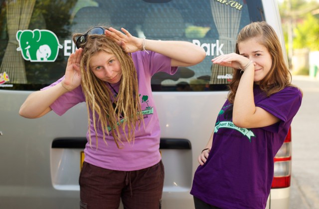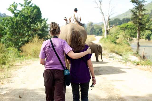 | Volunteer friends Kodi and Pat relaxing in the jungles of Elephant Heaven. |