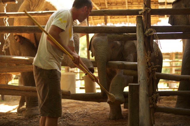 On the bus trip back into Chiang Mai, Chantelle and I spoke of volunteering at ENP for 1 week. To be able to live out at Elephant Nature Park, hang out with rescued elephants, help with their food and medical needs and helping out with park maintenance seemed like a much more rewarding holiday than sitting on some beach down south. Plus, after learning how elephants are trained we both now felt really terrible about riding on the elephant in Nepal. So it was decided pretty quickly.