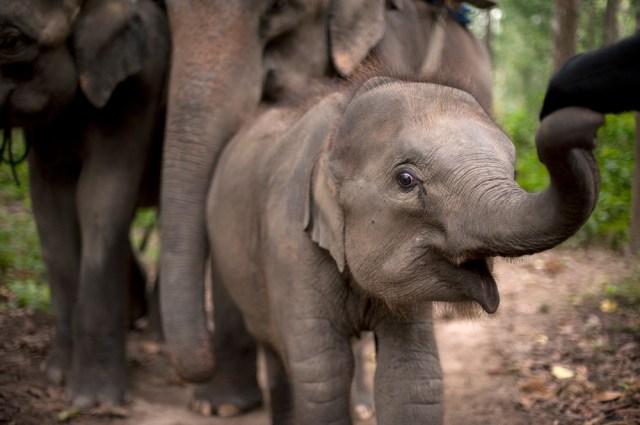 | Sangduen ‘Lek’ Chailert giving Faa Mai a tasty treat. |