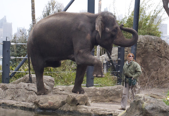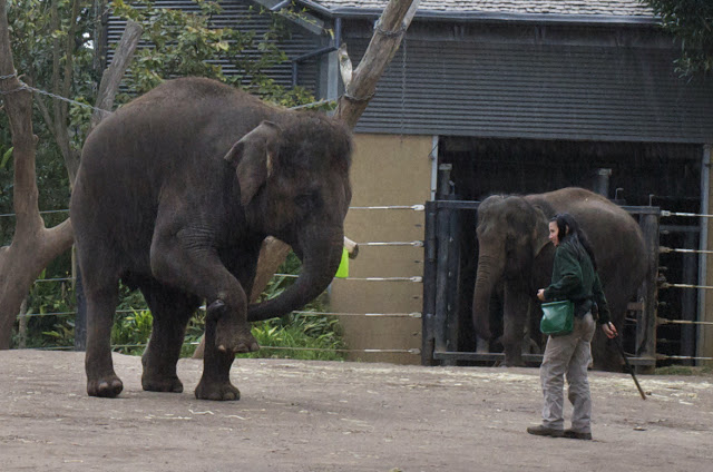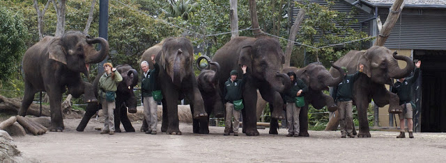 Female elephant tushes are here. She could barely reach up high enough but she never forced the elephant to lower her head. A sure sign of how the animas are treated at Australia zoo
