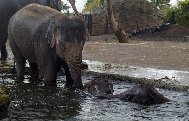 I wandered around the zoo for a few more hours before being drawn back to the elephant enclosure. There were no mahouts in sight and the elephants were having a great time playing together, squeaking and swimming in the pool. I found it a lot more rewarding watching these natural elephant interactions.