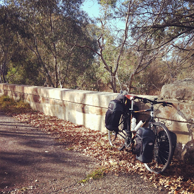We rode out on the Craigieburn bike path which guided us safely out of the city and then onto the glass strewn chaos of The Hume Highway. My original plan was to try and stay off the highway as much as possible, but after stuffing around for an hour trying to find roads that don’t even exist, we settled on the super busy and often scary Hume Highway. We rode out to the small town of Kilmore on that first day, some 85km. Chantelle and Mum met us at Kilmore caravan park and had booked a cabin and cooked up dinner for the first night which was really nice. I’m hauling a tent, sleeping bag, sleeping mat, cooking stove with pots and about 5kg of food. Staying in a cabin and sleeping in  a real bed was going to be a rare luxury.