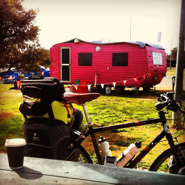 Day 10 on the bike took me from Cootumundra to Young. It was a relatively short day of 49km with about 440m of climbing (it’s finally getting a little mountainous). I had the best rest stop on the top of the first climb of the day, there was a vibrant pink caravan at a rest stop which sold coffee, it was fantastic, I really felt like I was in the Alps with crazy caravan people. Ha! The rest of the day was pretty uneventful, nice terrain, good roads and thousands of Cherry trees before rolling into the town of Young for the night.