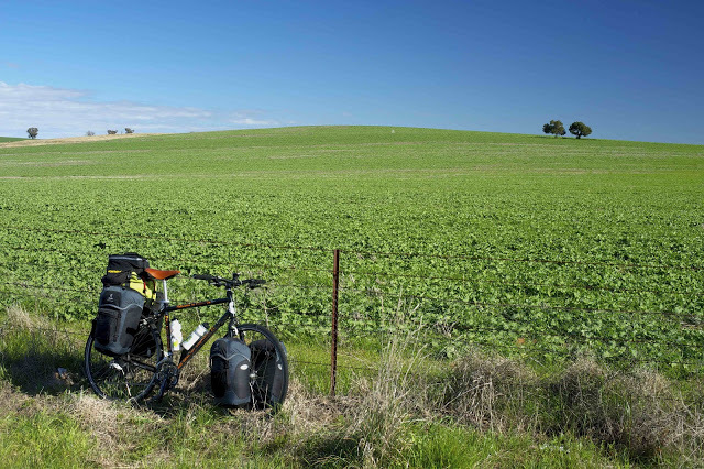 Day 9 was the longest day in the saddle so far from Wagga Wagga to Cootamundra. A total of 95.84km with over 650m of vertical elevation gain. I began the ride by heading in the wrong direction hence the total of 95km instead of 93km. Ha! I’m sure it’ll happen again… Today, however was easily the most scenic day so far, beautiful rolling hills, green fields and blue skies again. In between the really challenging hills there were some great descents. One descent lasted 15km!!! I also clocked a new fastest speed at 55km/h, I know it doesn’t sound that fast, but when your on tyres as wide as your thumb with over 125kg of weight it can get a little sketchy at that speed! So far I have ridden a total of 638.6km… Only 3360km to go!