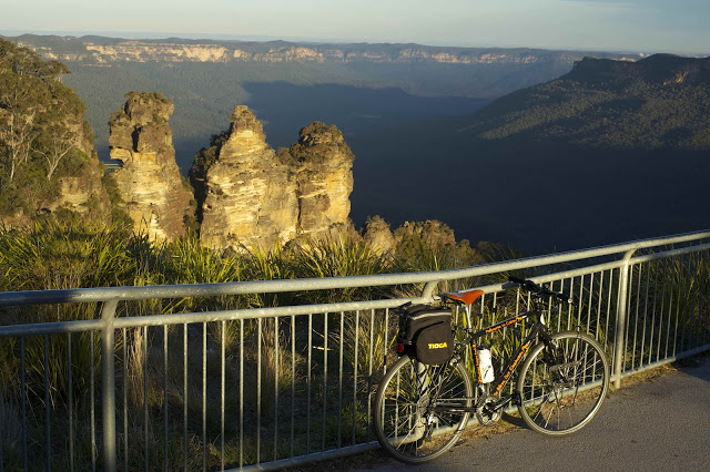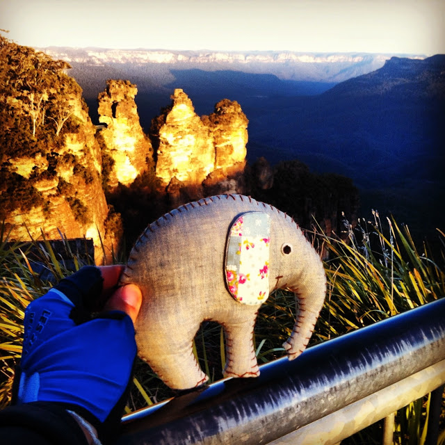Day 15 was always going to be epic. The climb of Mount Victoria is about 5km long with an average gradient of around 7%. That’s Tour de France style climbing right there!!! I was in granny gear the whole climb and it took me around 45 minutes to get to the top. I can safely say that is one of the more challenging climbs I’ve done… Apart from that, today was fantastic. Ha! As I pulled into a park in Blackheath I was approached by two lovely people who were so interested in what I was doing they invited me back to their house for lunch! Rob and Judy were probably the best lunch hosts ever, Judy squeezed some fresh orange juice and made a delicious sandwich for me while Rob rang around 5 different media contacts around the area, from this we were able to shoot an interview in Blackheath about the elephants and organise an interview in Katoomba for The Blue Mountains Gazette later that day. I can’t thank them enough for their kindness and generosity towards a complete stranger, I will not forget them any time soon that’s for sure… So after about one and half hours I continued on to Katoomba, had a quick interview and photo for the gazette and rolled down to the famous 3 Sisters lookout for an amazing sunset in the blue mountains.
